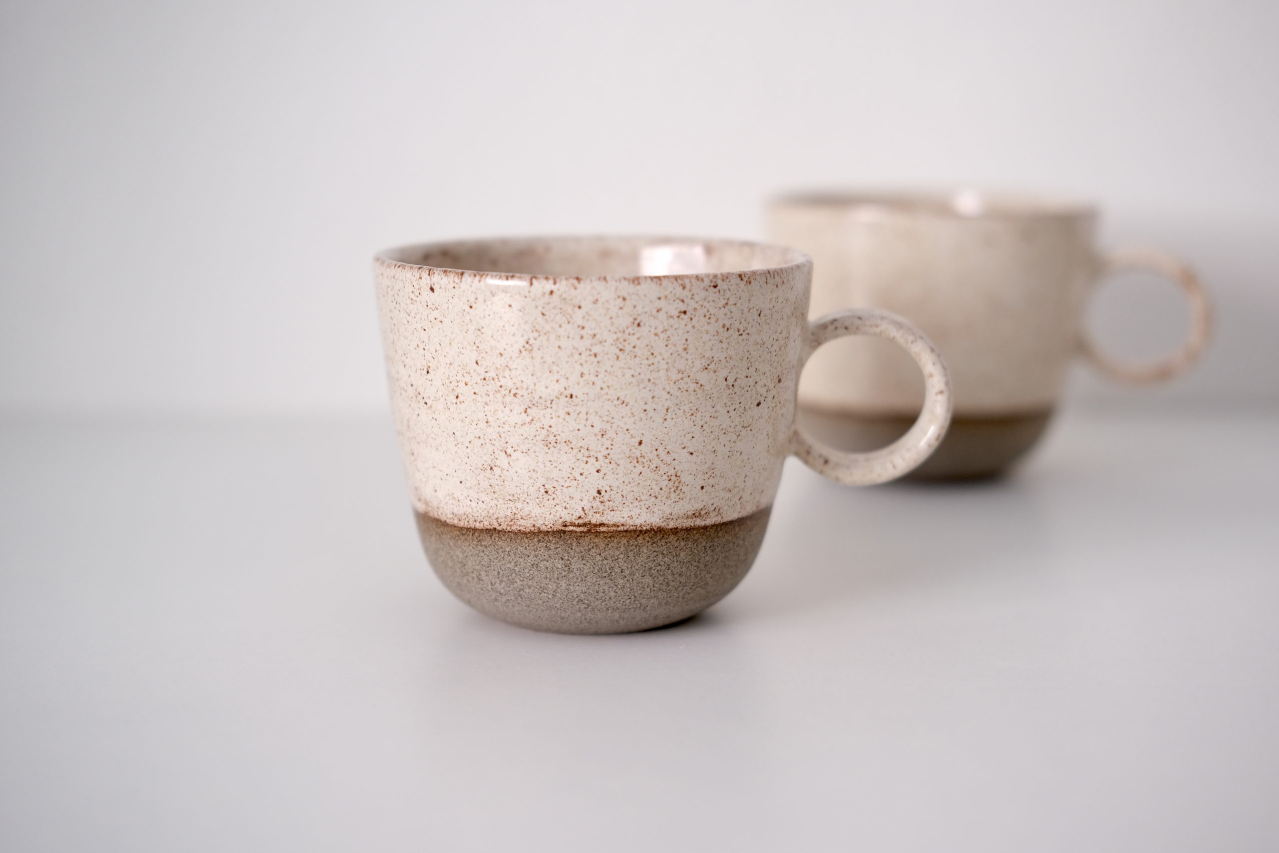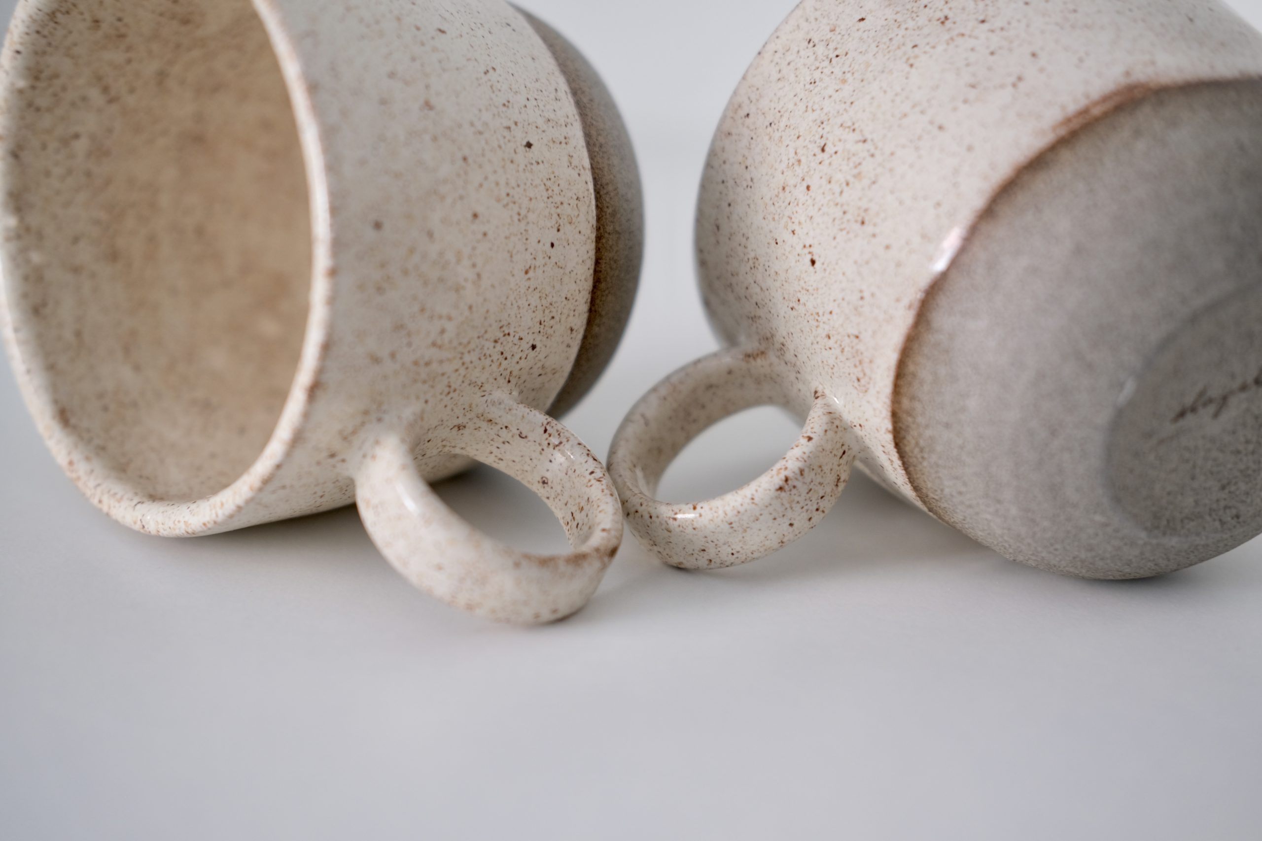 Skodelica za belo kavo ali čaj je izdelana ročno iz sive kamenine in prekrita s sijaj kremno glazuro. Volumen skodelice je 300ml in je tako primerna za razne tople napitke. Preprosta oblika, ki jo odlično dopolnjuje enostaven, okroglast ročaj.